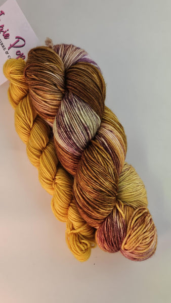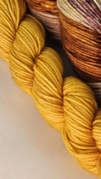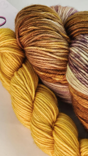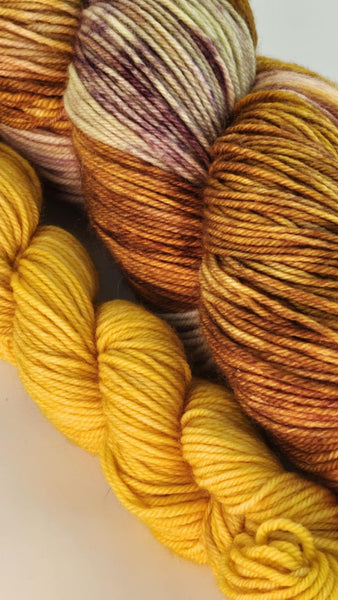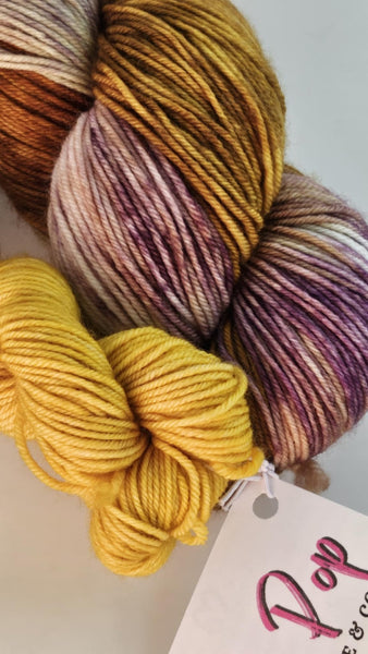 Unwind and brighten up with Calm My Thoughts & Flashlight! This unique yarn combines 85% extrafine superwash and 15% nylon, creating a rustic yet durable texture. With pops of yellow and green, this skein and mini bundle will add a playful touch to your next project.