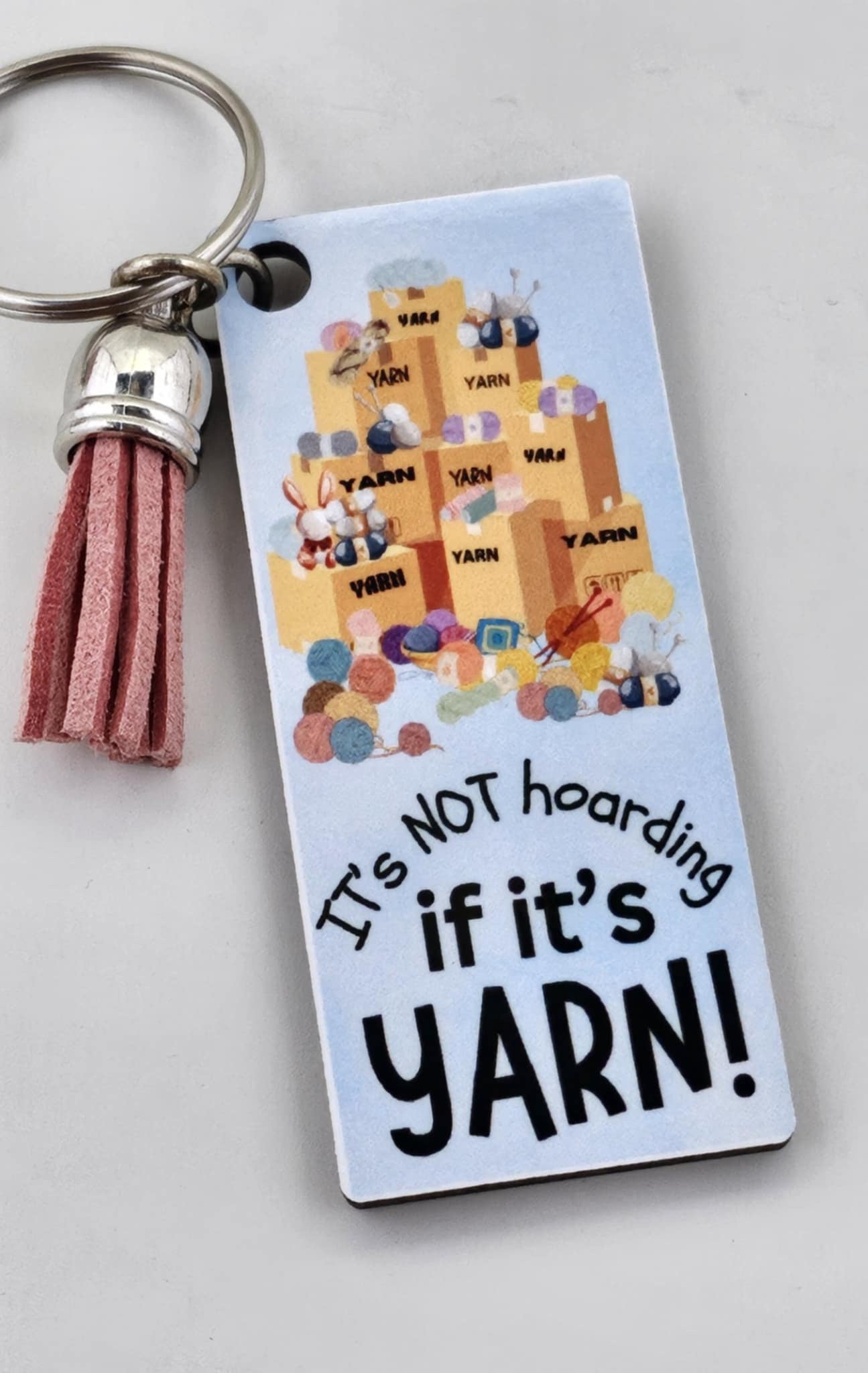 Liven up your keychain with our playful Key Fobs! Each fob features a unique design, like "It's NOT hoarding if it's Yarn!" and includes a trendy tassel for added flair. Keep your keys organized in style (and show off your love of yarn) with these must-have accessories.