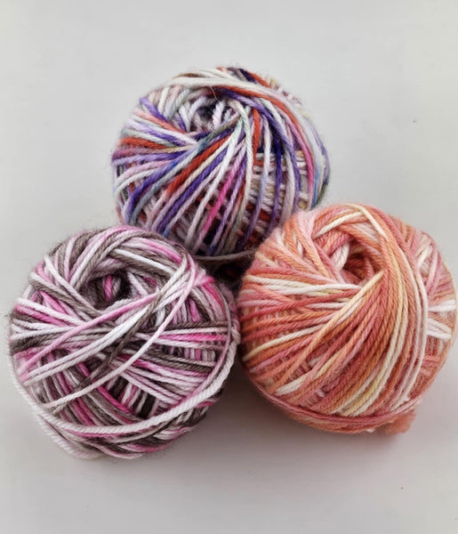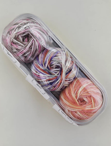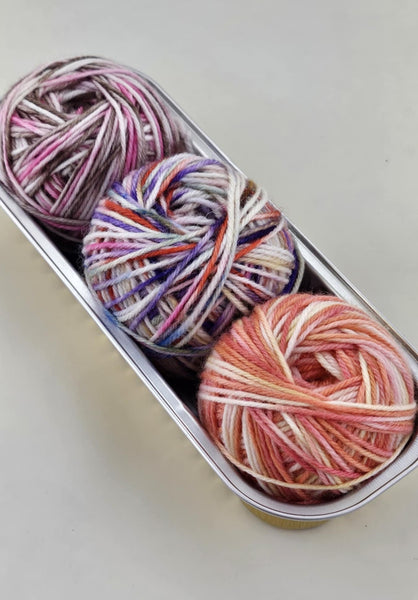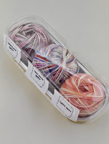 Indulge in a trio of deliciousness with Sweet Treats Taffy! This pack includes 3 20g mini skeins of our 85% extrafine superwash merino and 15% nylon blend, perfect for adding pops of color to your knits. Treat yourself to some sweet fiber fun (without the calories)!