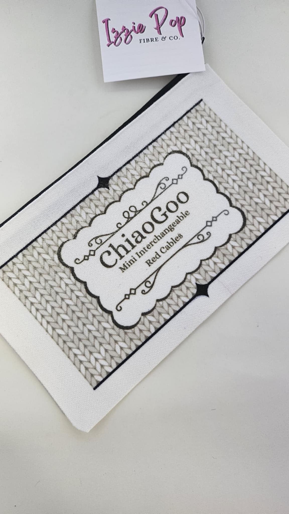Organize your Chiaogoo needle cables with these chic canvas Mini cable pouches. With a stylish knit stitch design, these bags keep your cables in one place for easy access during your next small gauge project. Say goodbye to tangled cables and hello to organized knitting!