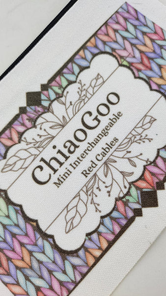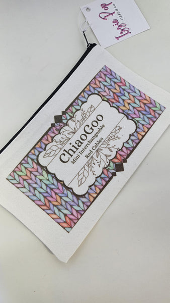 Keep your Chiaogoo Needle sets organized with these playful Pink Canvas Cable Pouches, designed with a unique knit stitch pattern. The labeled pouches make it easy to locate your mini cables and get started on your next small gauge project. No more cable confusion with these quirky zippered pouches!