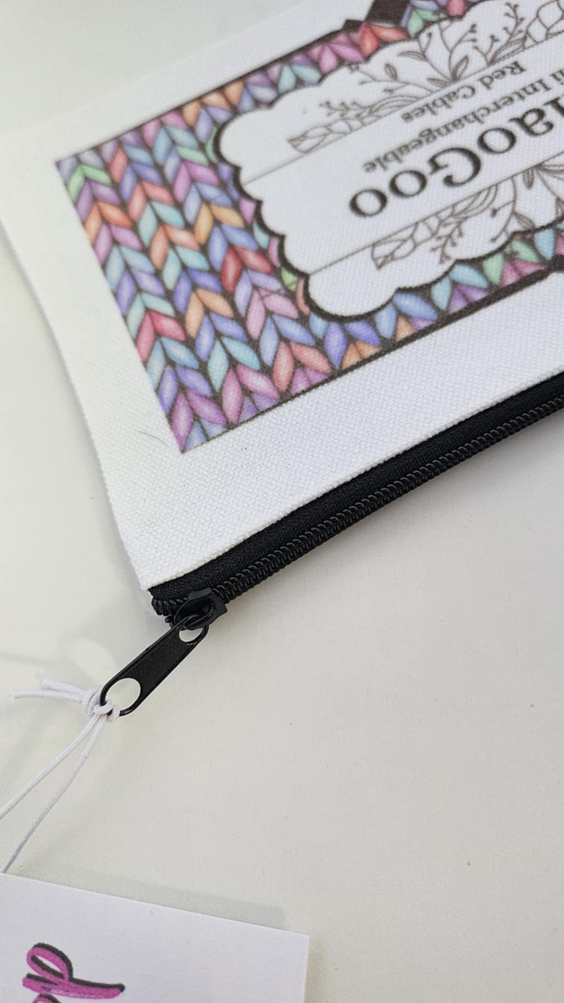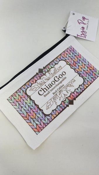 Keep your small Chiaogoo interchangeable needle set cables organized in style with these canvas zippered pouches. Featuring a pastel knit stitch design, these generously sized pouches are both practical and aesthetically pleasing. Say goodbye to cable chaos!