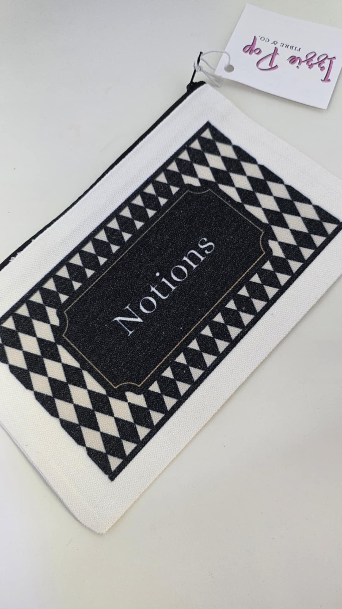 Keep your supplies stylishly stowed in our Notion Pouches - Diamonds. The diamond pattern adds a touch of Harlequin flair, while the generous size fits easily into your project bag. Stay organized and have your tape measures, stitch markers, needles, and more at your fingertips.