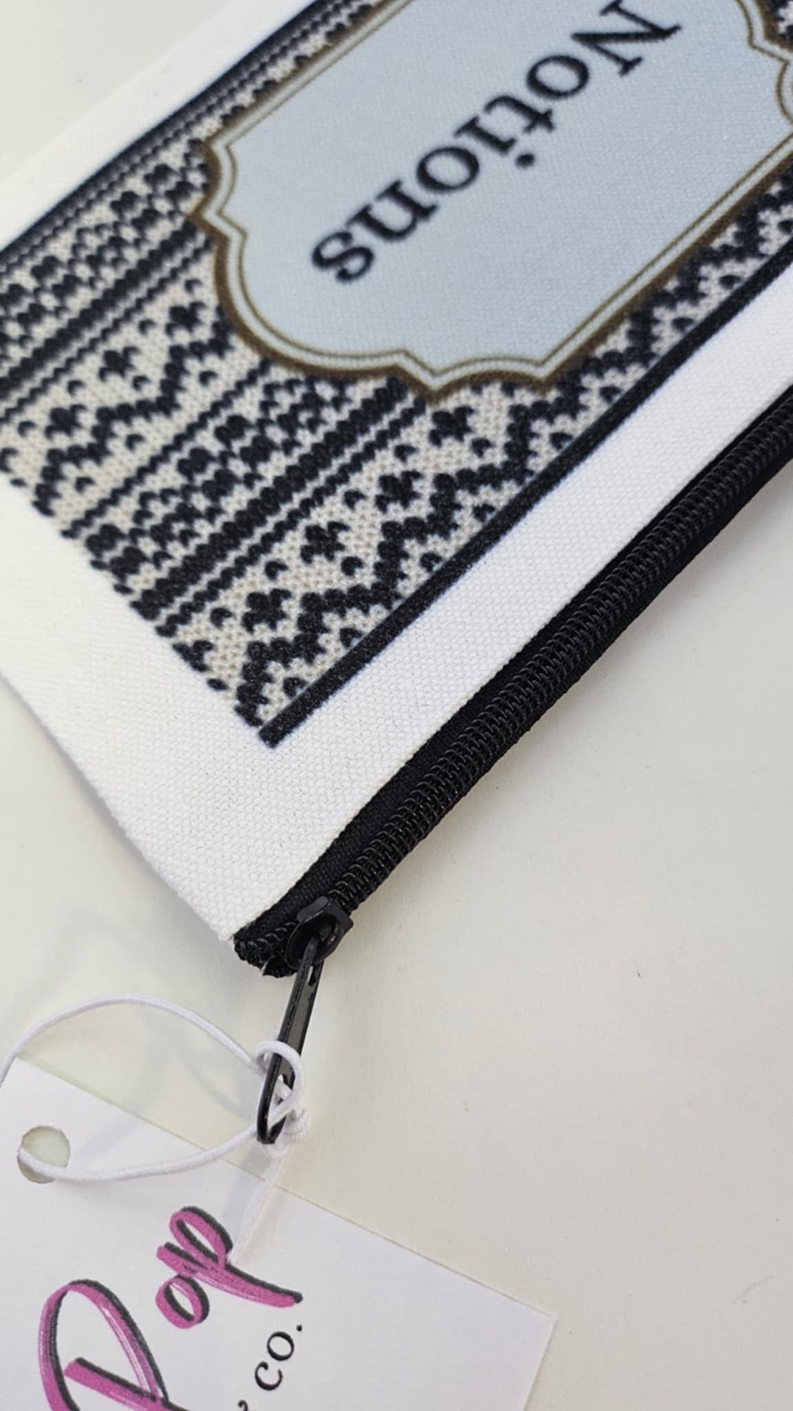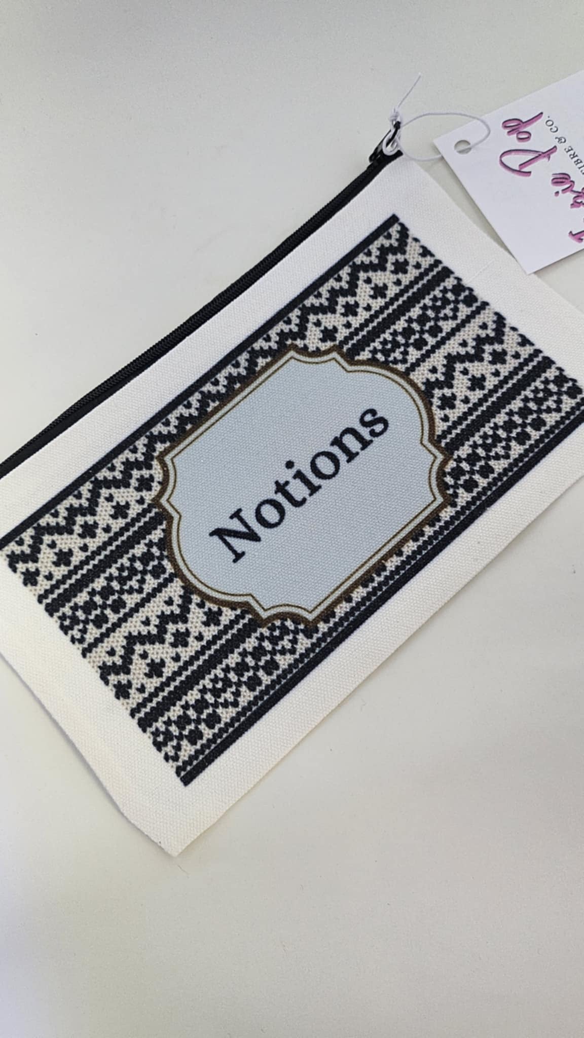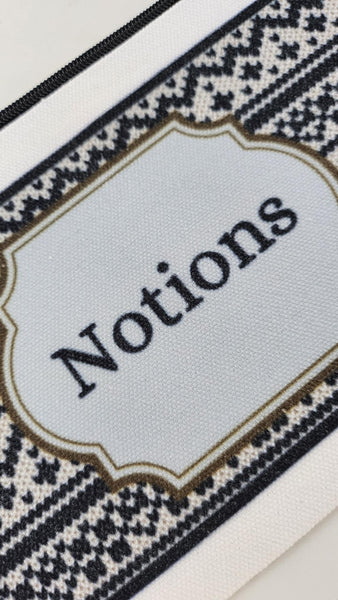 Keep your stitching essentials organized and in style with our Notion Pouches - Faire Isle. With a beautiful knitted pattern and generous size, this pouch is perfect for holding stitch markers, tape measurers, scissors, and more. Perfect for on-the-go projects, this travel-sized pouch is a must-have for any knitter.