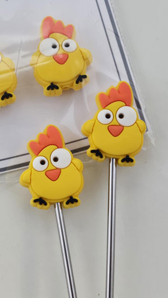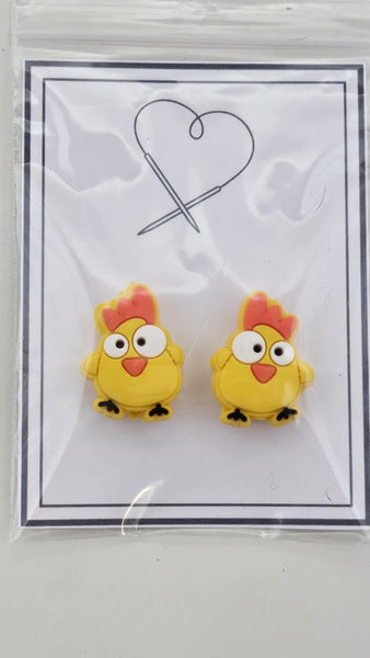 These adorable Point Protectors featuring silly chickens in bright yellow will add a touch of farm animal whimsy to your next knit night! Made with silicone, the stretchy 1mm holes can accommodate a variety of needle sizes while keeping your project secure. A must-have for any knitting enthusiast (or chicken lover)!
