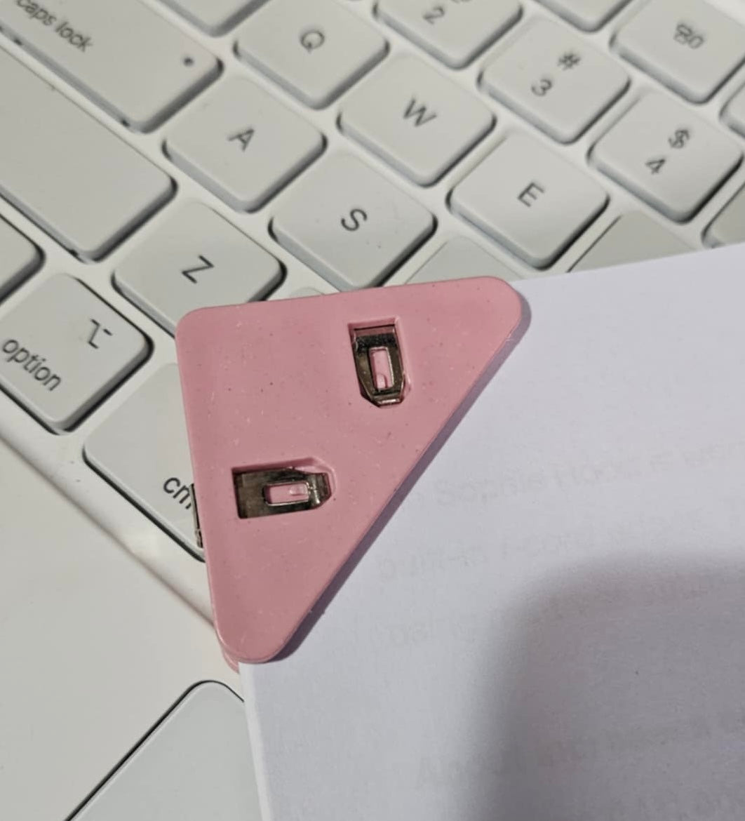 Skip the hassle of flipping through pages with these quirky staple-less staples. Just pinch and pull, and your pattern page will be ready for you to work on. No more fumbling with stapling, saving you time and frustration. Enjoy a smoother crafting experience with this unique corner click feature. 5 colours to select from - Pink, Blue, Green, Purple & Beige. 2 clips per pack.